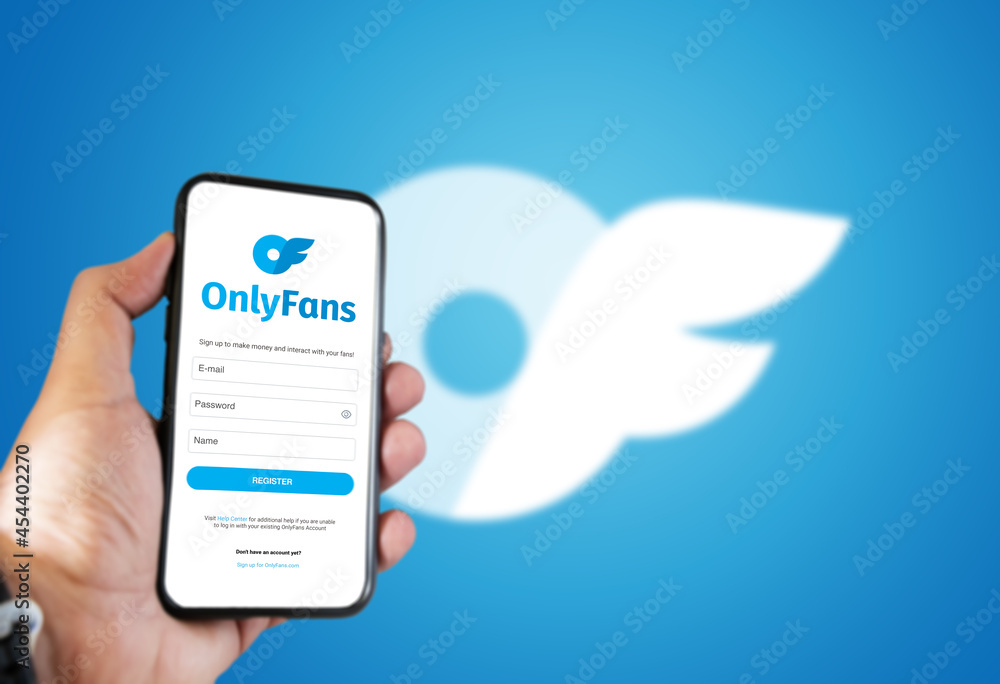 A Hand Holds A Mobile Phone With The Onlyfans Registration Form On The Screen And The Logo Blurred In The Background Stock Photo Adobe Stock